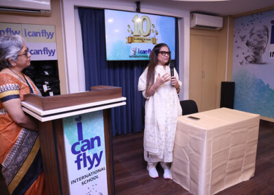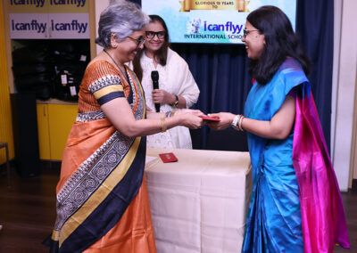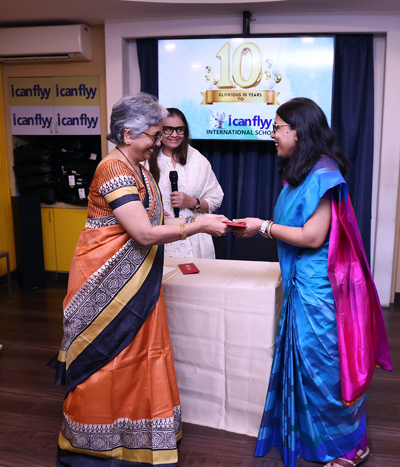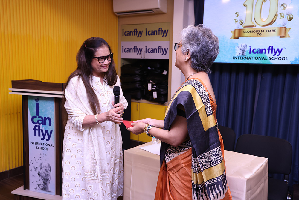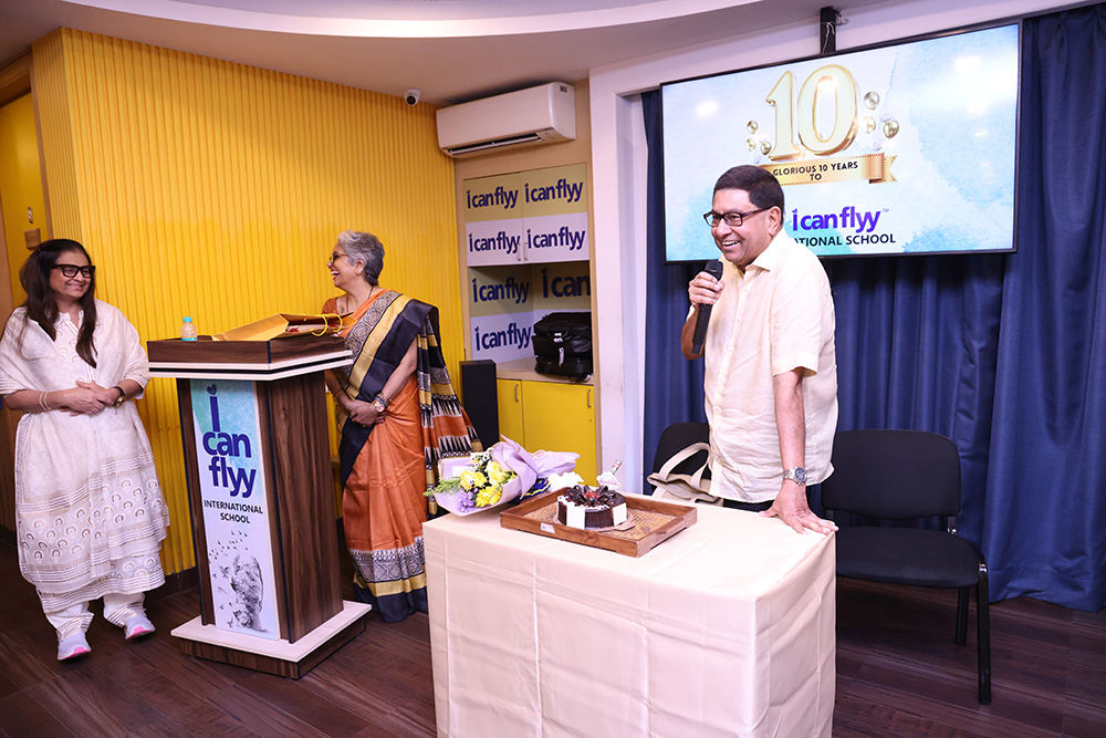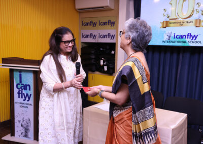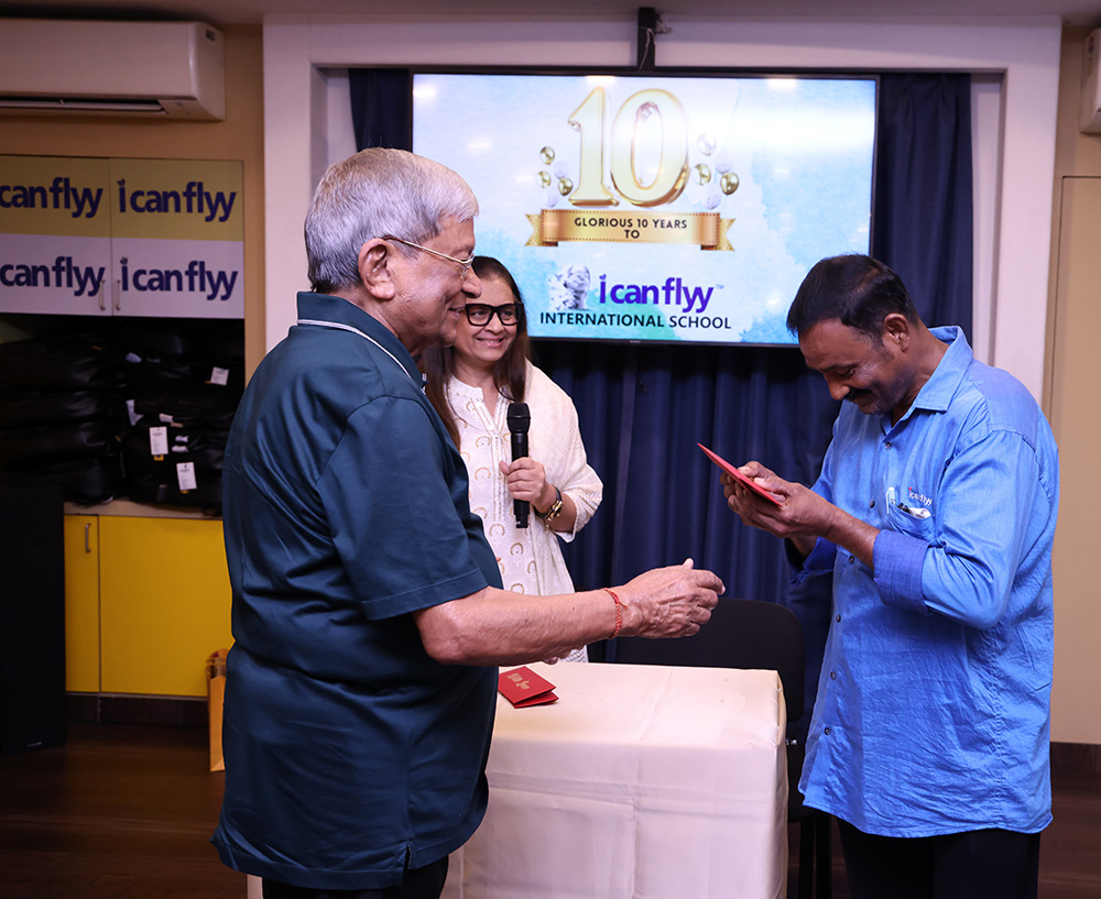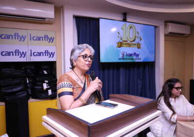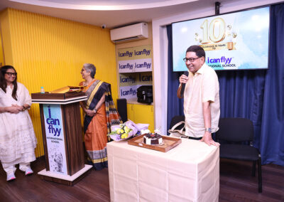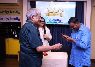 15th June 2025 – 10th Foundation Day of ICFI. The facility was buzzing with excitement. The day started with the arrival of Shri. H.P. Budhia – Chairman Patton, Shri. Sanjay Budhia – Managing Director Patton and Dr. Minu Budhia – Founder Director – ICanFlyy International School. They were welcomed by our principal Ms. Sugandha Ramkumar and center manager Mr. Swaminath Singh and escorted them to the 4th floor AV room. The teachers and helpers were present. Principal ma’am gave a welcome speech. She then requested Dr. Minu Budhia to say a few words. Minu ma’am shared the journey of ICanFlyy from the day it started till date. She felicitated five of the staff who have been associated with the organization since its inception. Then the teachers were given a memento and helping staff were given a token of appreciation. Shri. H.P. Budhia Sir and Shri. Sanjay Budhia Sir gave a brief speech and shared words of appreciation. A magic show was organized for the students which was followed by yummy treat at ICanFlyy Tea Kafi. The students were given a goody bag. The day ended with a lot of cheer.