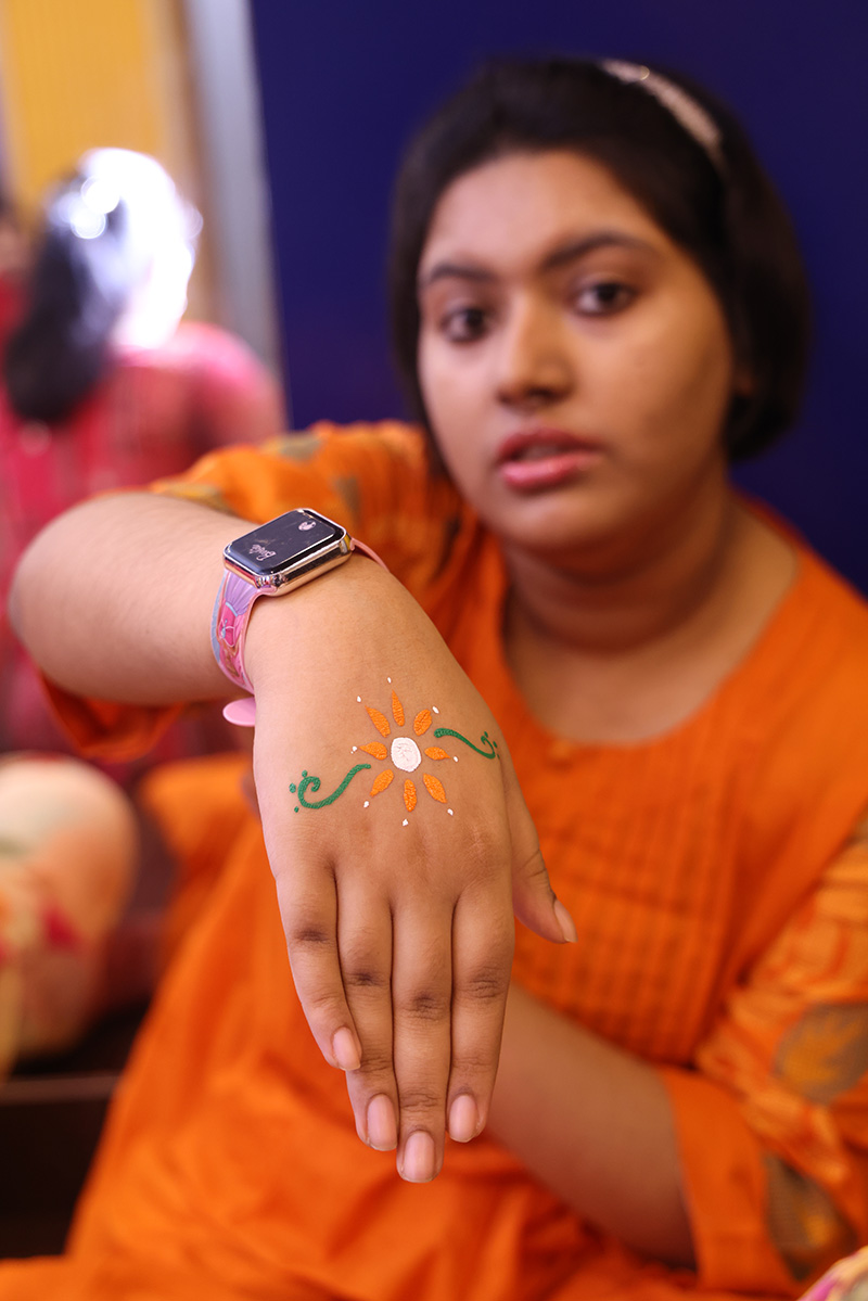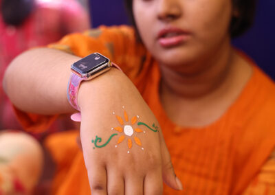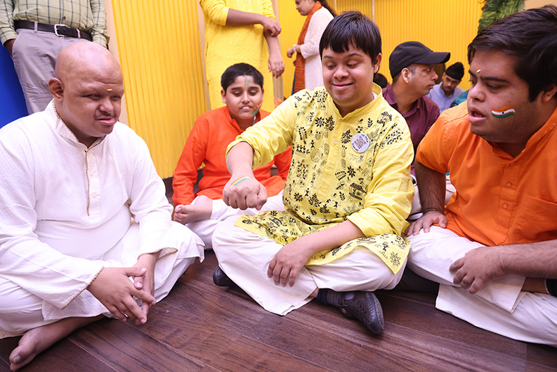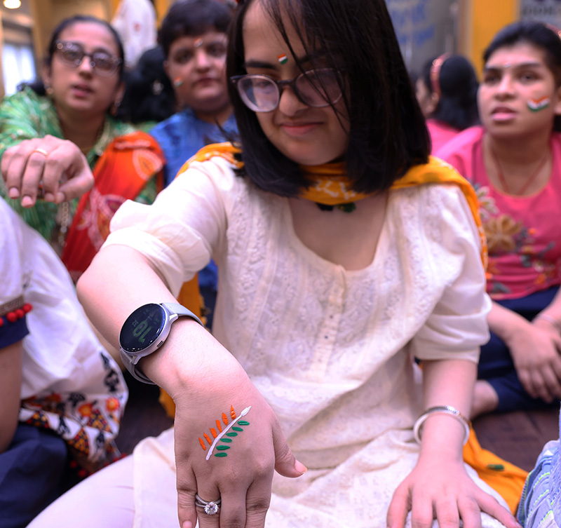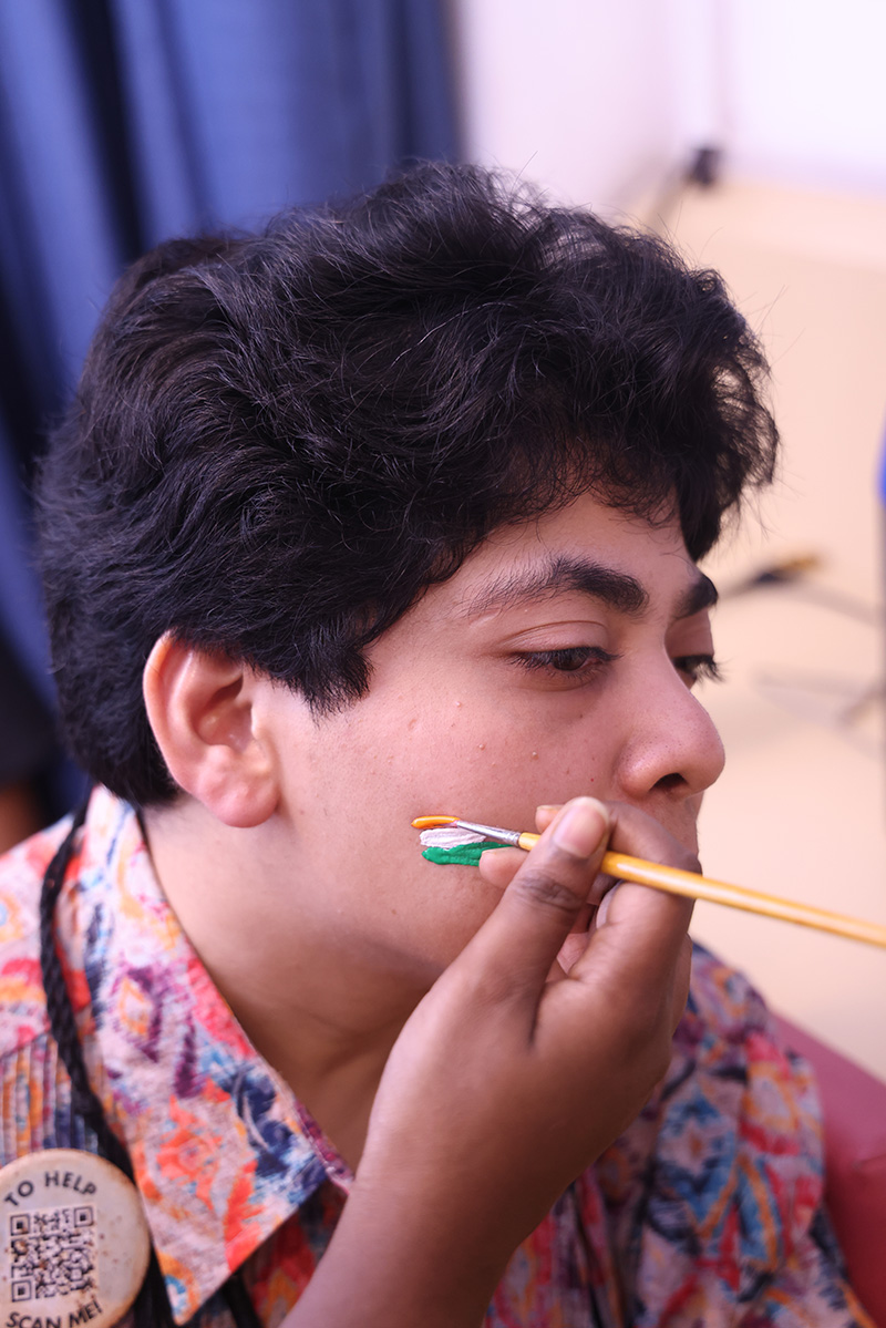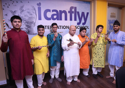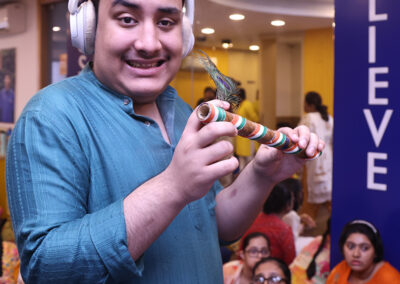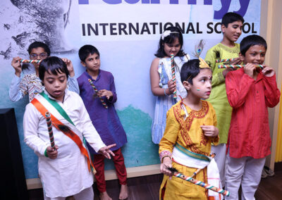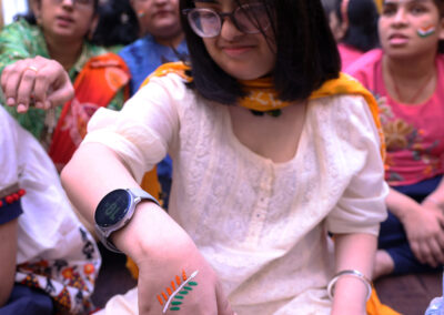 The students then decorated a bamboo flute with tri colored ribbon and peacock feather. There was a lot of excitement and cheer among the students. The day ended with all singing the national anthem.