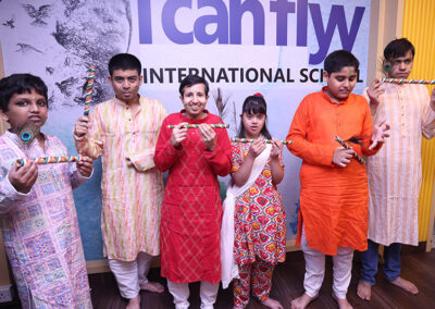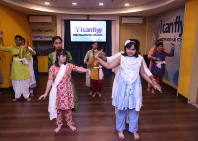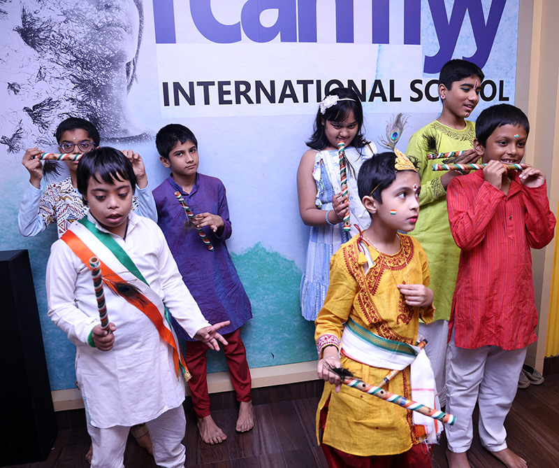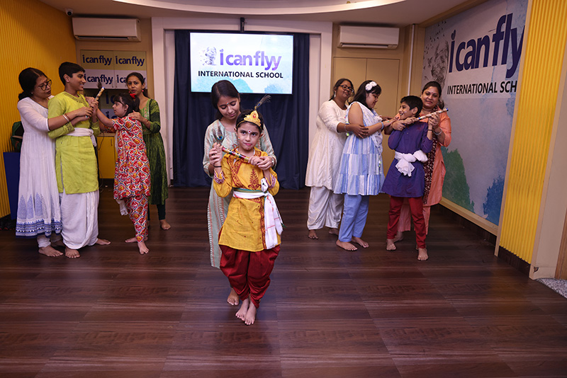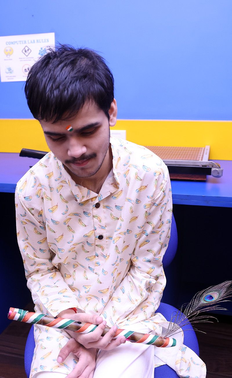 It was a double celebration on 14th August 2025 – Independence Day and Janmashtami. Students came in dressed in vibrant Indian clothes. Some came dressed as Krishna and Radha. The celebrations started with some patriotic songs and dance. This was followed by the younger students dancing along with their teachers to a song on Lord Krishna.