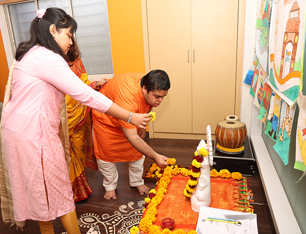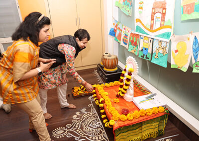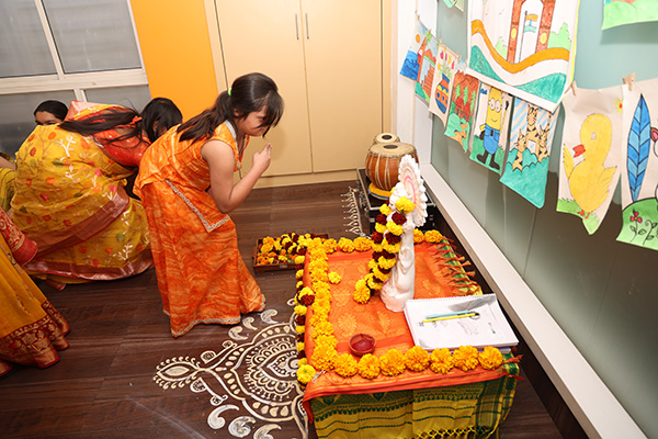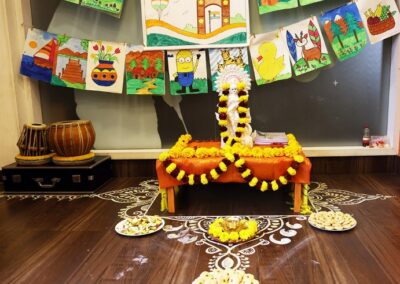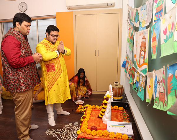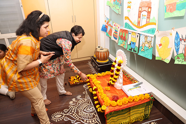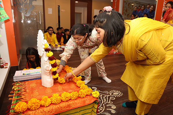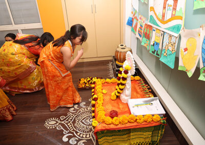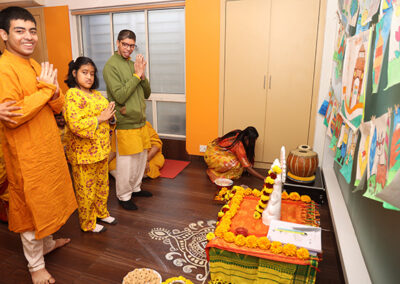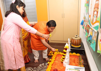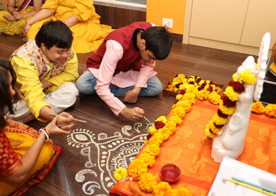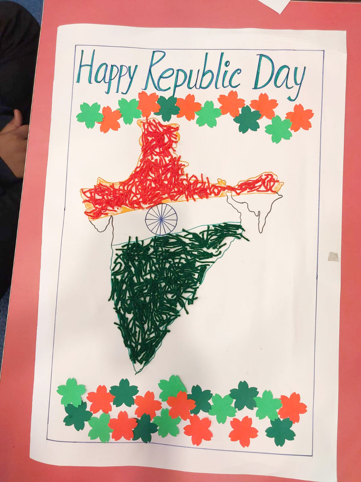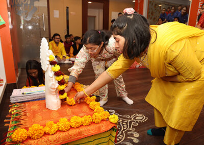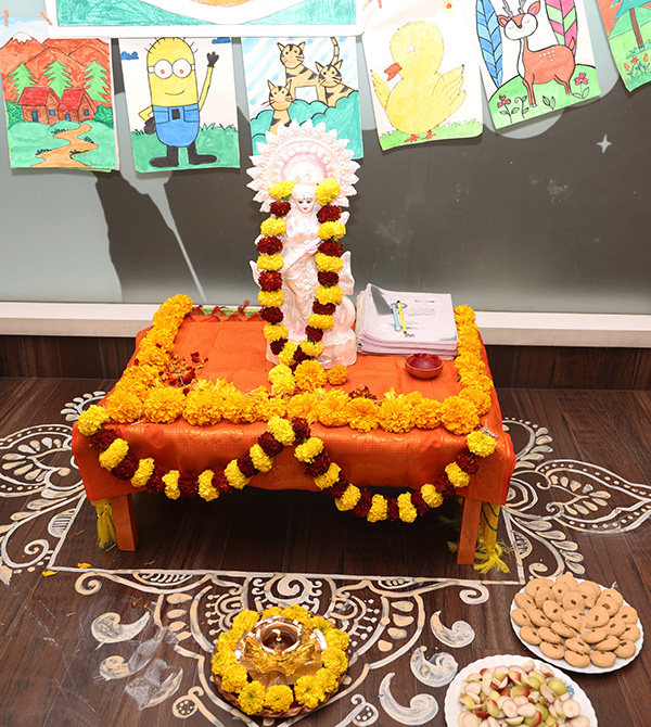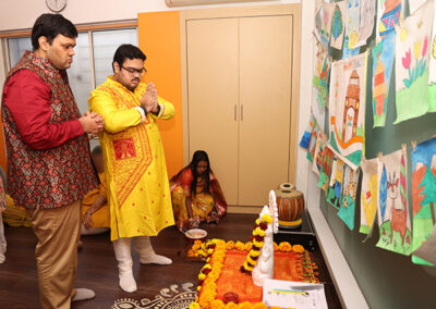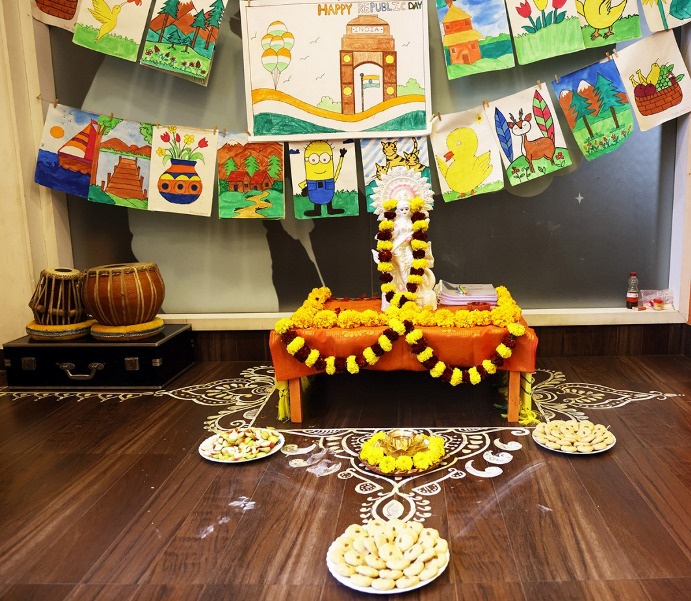 It was a double celebration at ICanFlyy International on 22nd January 2026. We celebrated Saraswati puja and Republic Day together. The students came dressed in Indian ethnic clothes in festive colours. The day started with unfurling the Indian flag and singing the national anthem. The students then decorated the space where the idol of goddess Saraswati was placed. They made Alpana with their teachers, then decorated the space with yellow, orange marigold flowers. The students and teachers did puja and sweets were distributed. A craft work was done which the students took home along with some chocolates made by them. The celebrations, like every year was full of good and positive vibes.