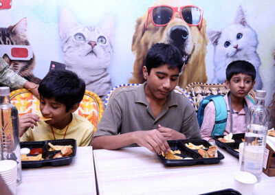 There was a magic show which kept the students enthralled. Tattoos were made and each of them had a different tattoo on their hands and face. Prachi came and cut her birthday cake with her ICanFlyy friends. The students were treated a yummy lunch.