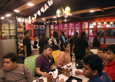 Our inspiration, Prachi’s birthday was celebrated with a lot of fun and joy on 14th October 2025. The students came dressed in smart casuals. There was a lot of excitement in the air. The celebrations were in ICanFlyy Tea Kafi. The café was decorated with streamers.